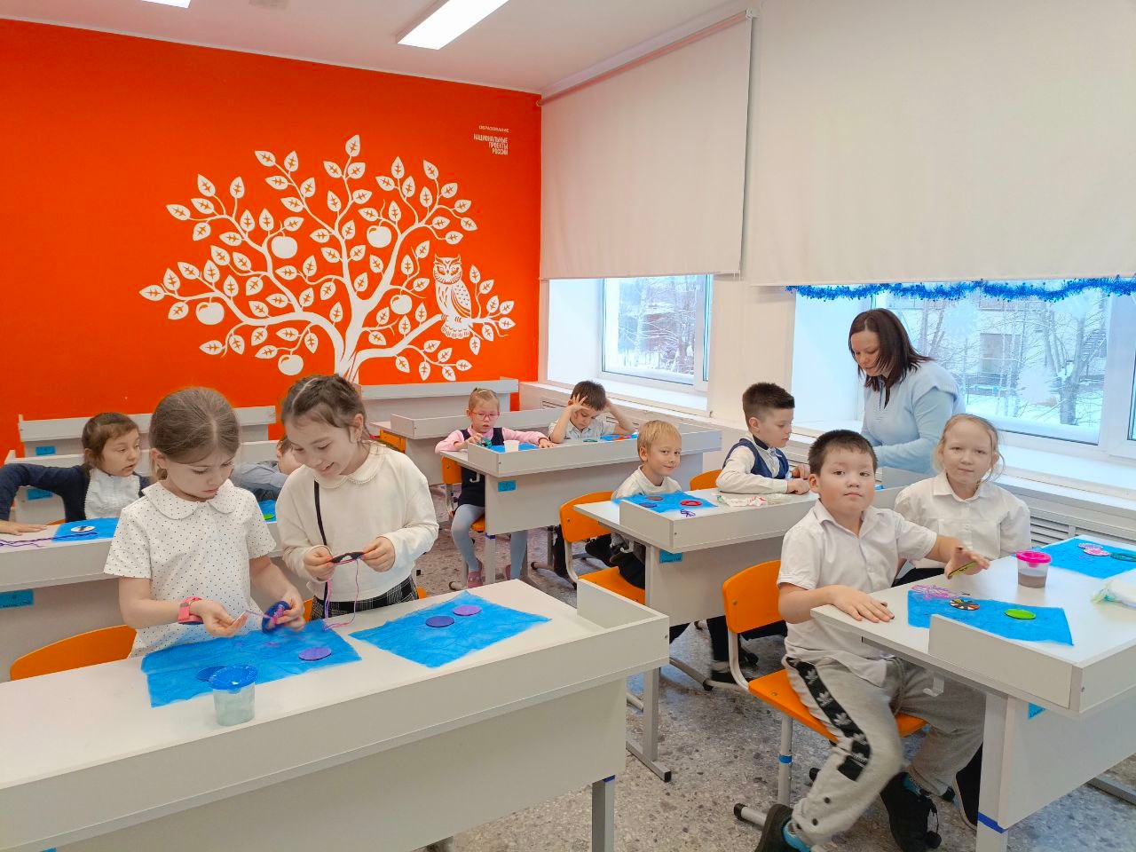 В этот день школьный кабинет превратился в настоящую мастерскую Деда Мороза. Юные мастера работали с самыми разными материалами: