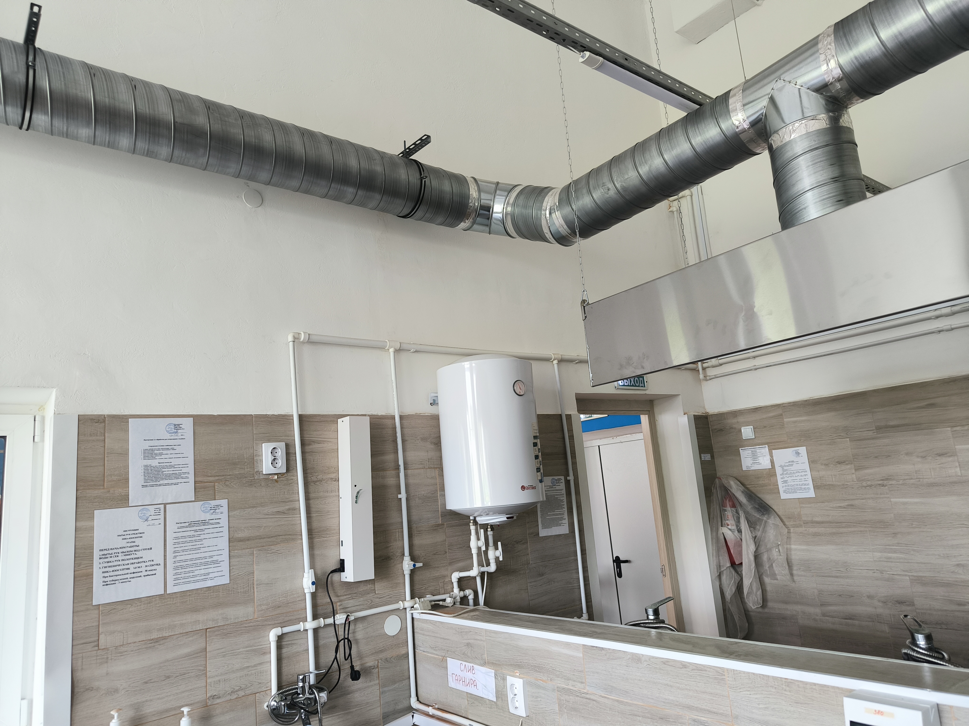 В рамках реализации мероприятий по созданию в общеобразовательных организациях условий для организации горячего питания обучающихся в 2025 г. МБОУ СОШ №16 установлена локальная система вентиляции и вытяжки над моечными ваннами пищеблока.