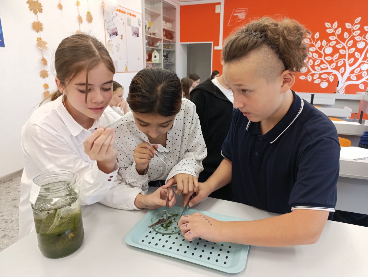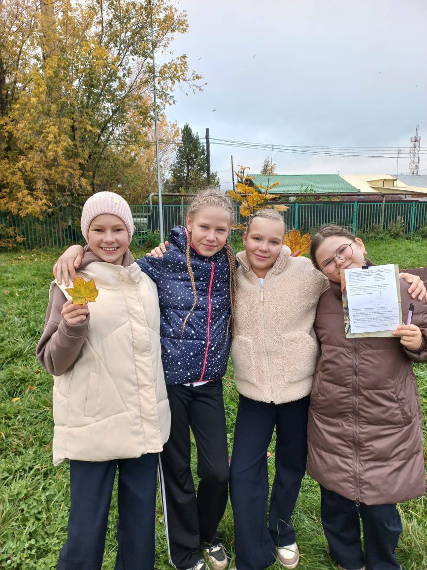19.09.25 на занимательной биологии ученики 5 класса вышли на пришкольную территорию на урок – экскурсию «Разнообразие растений. Осень в жизни растений».