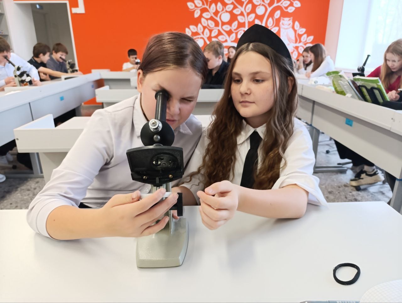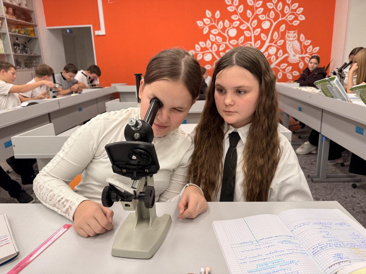 Для лучшего усвоения материала, ребята рассмотрели готовые микропрепараты под микроскопом, обменялись фотографиями и сравнили с рисунками в учебнике. В ходе практической работы создавать таблицу с характеристикой тканей было гораздо проще.
