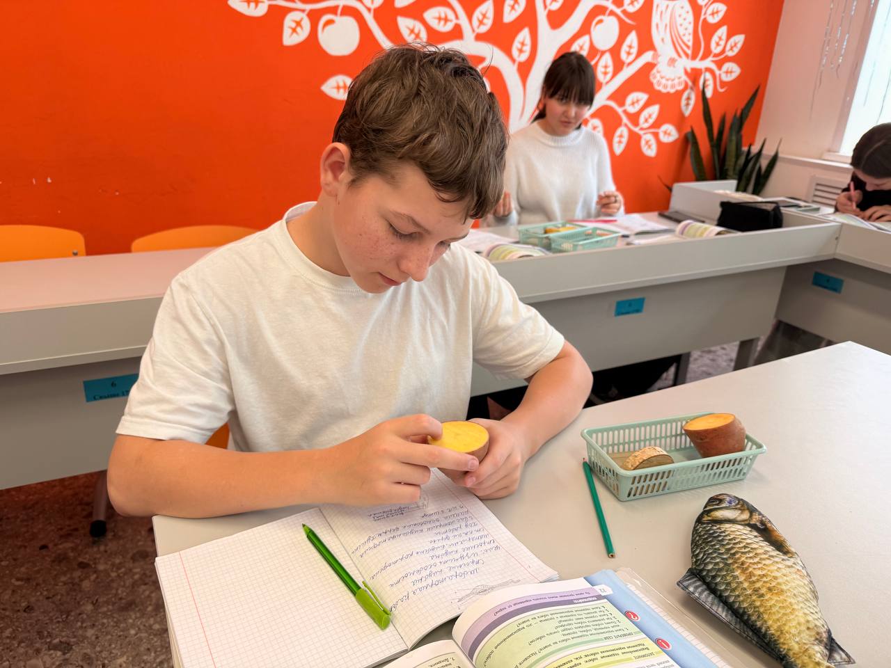Ребята рассмотрели ветку липы под микроскопам. Изучили внутреннее строение и зарисовали поперечный срез. Рассмотрели годичные кольца. Узнали, чем отличается древесина, образовавшаяся весной, от древесины более позднего времени года. Смогли установить какие слои древесины старше по возрасту.