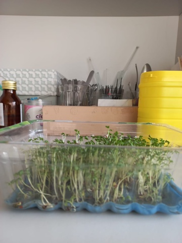 3) поставить контейнеры в тёмный шкаф на 2-3 дня, после выставить на свет, периодически подливать воду в контейнеры, наблюдать рост проростков.