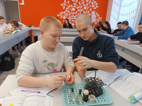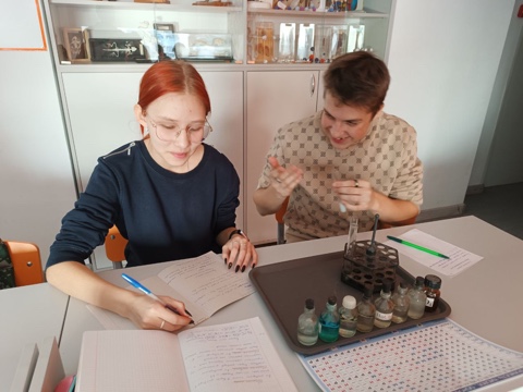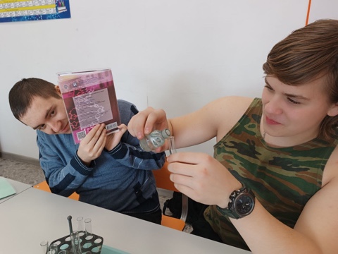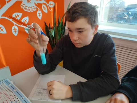 Ребятам было предложено провести ряд химических реакций, которые характеризуют химические свойства предложенных веществ. В ходе наблюдения необходимо было указать признаки их протекания. Без творческого подхода не обошлось. После основных реакций можно и поэкспериментировать и предложить варианты образования новых веществ.