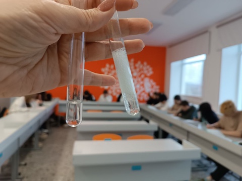 На уроке ребята получили 2 пробирки с неизвестным веществом. Возможные вещества это сульфат натрия и карбонат калия. Жидкости не имеющие цвета и поэтому определить где какое, визуально тяжело. Необходимо было подобрать реактивы к этим веществам. С помощью таблицы растворимости и знаний полученных на уроках сделать это было не сложно.