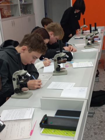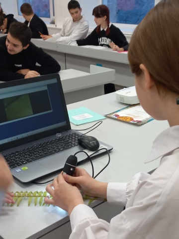 В ходе наблюдения митоза в клетках кончика корешка лука на готовых микропрепаратах, хорошо можно различить клетки тканей многоклеточных. Они на ранних стадиях развития организма делятся очень часто, а затем их клеточные циклы значительно удлиняются. Это хорошо видно и в световой и электронный микроскоп. С помощью электронного микроскопа, ребята зафиксировали объект, чтоб легче было его зарисовать в тетради. Тем самым облегчая себе работу.
