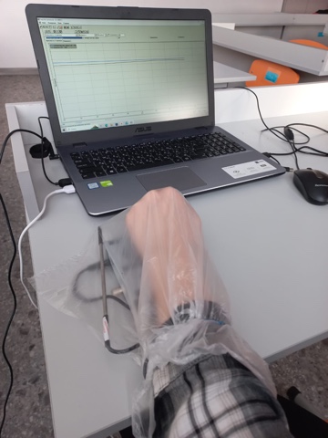 Во второй части: - В пакет поместили датчики температуры и влажности, Надели пакет на руку и закрепили пакет резинкой или шнуром.