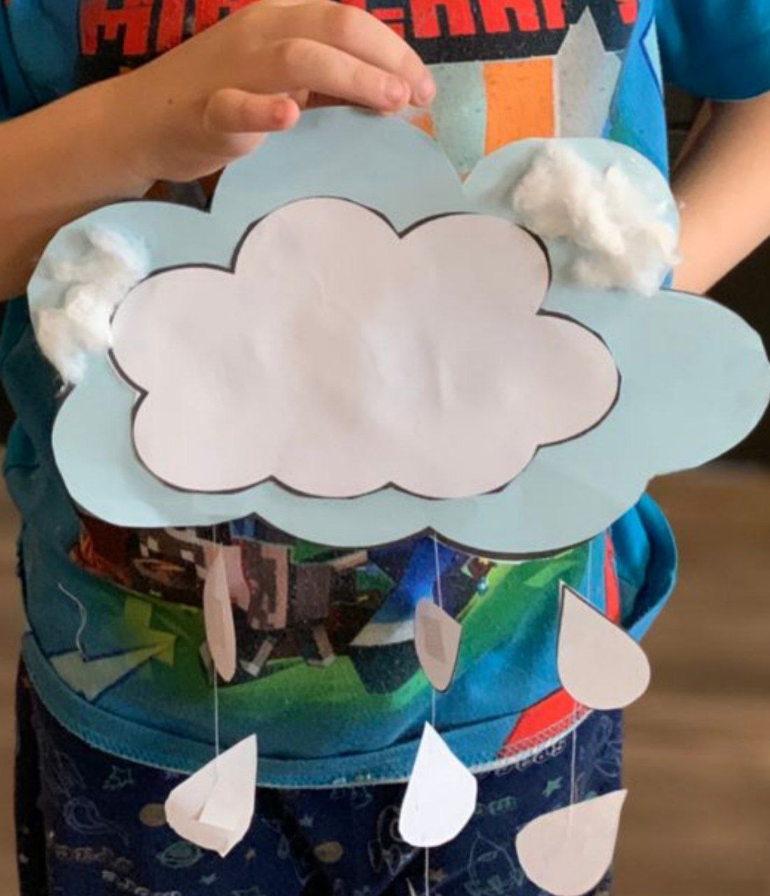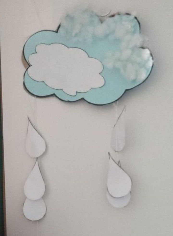 Дети с удовольствием вырезали, склеивали, фантазировали, помогая друг другу. Им очень понравилась тучка, ведь если на неё подуть, то пойдет «косой» дождь. В конце все ребята придумывали и делились рассказами о своих тучках.