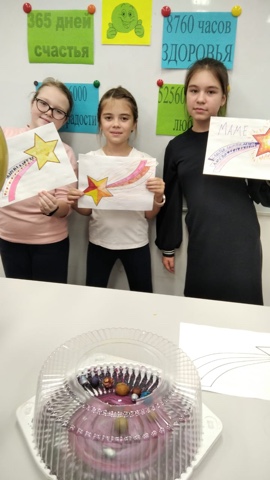 В преддверии праздника «День матери» участники кружка по астрономии «Дорога в пятый океан» испекли праздничный торт «Солнечная система», открыли и подарили мамам – ЗВЕЗДУ.