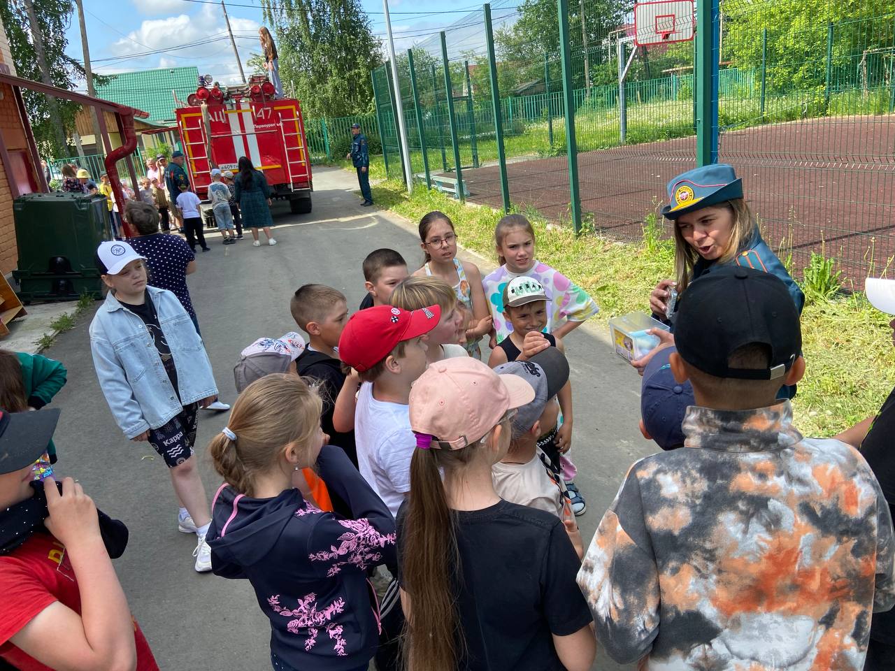 Особенностью мероприятия стало присутствие настоящей пожарной машины, благодаря чему дети смогли увидеть изнутри устройство спецтехники и задать интересующие вопросы специалистам. Профессиональные пожарники продемонстрировали оборудование, которое используется ими ежедневно, включая шланги, огнетушители и защитные костюмы.