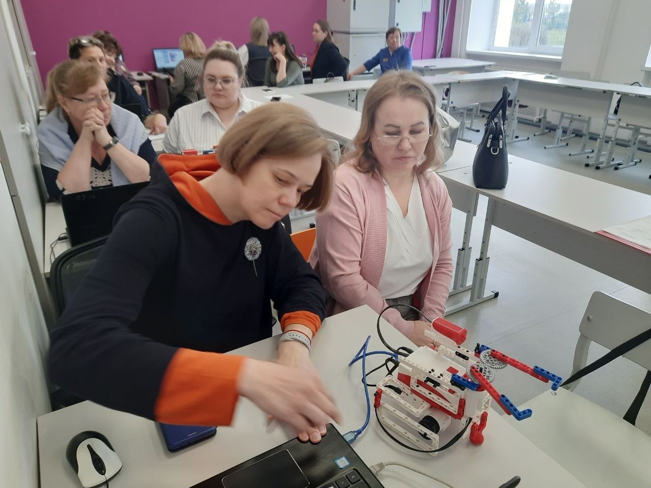 В рамках мероприятия технической направленности по использованию оборудования центра образования «Точка роста» в урочной и внеурочной деятельности педагоги-участники на мастер-классе перевоплотились в учеников и с огромным интересом использовали возможности робототехнического набора КЛИК и приложения Mblock, также активно участвовали в квиз-игре «Физиполия», где все гости-участники были вовлечены в изучение движения и взаимодействие тел давление твёрдых тел, жидкостей и газов. Затем педагоги побывали на уроке истории, где моделировали средневековые замки с применением 3D-технологий.